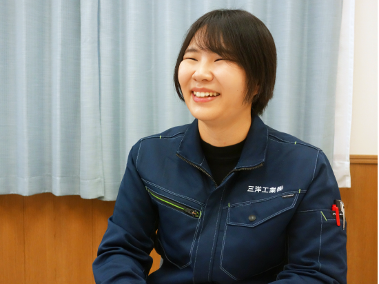 学生時代は建築系の勉強をしていて、大きなものよりも細かいものを作ることが好きだったので、建材メーカーを志望していました。三洋工業を選んだ理由は、「ものづくりのプロフェッショナルになる」という夢が叶うと思ったからです。選考中に社内の見学をさせていただいた際に、他社にはない珍しい設備がいくつもあることに驚きました。面接では「若手でもどんどん新しいことにチャレンジできる」と聞きました。ここでなら思い切りものづくりに打ち込める、自分もお客様も満足できる商品をつくることができる…と、入社を決めました。